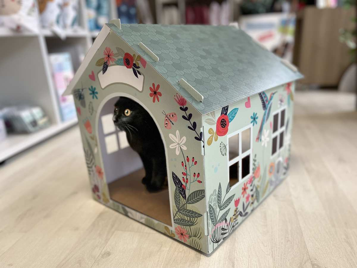 Offrez à votre ami à quatre pattes une maison confortable et luxueuse qui lui est propre avec la maison pour chat vert édition printemps ! Cette élégante maison en carton est conçue de manière créative avec de magnifiques dessins de fleurs et d'oiseaux, ce qui en fait le complément parfait à la décoration de n'importe quelle maison. De plus, sa construction en carton durable garantit aux chats un endroit sûr pour faire ses griffes et se reposer.