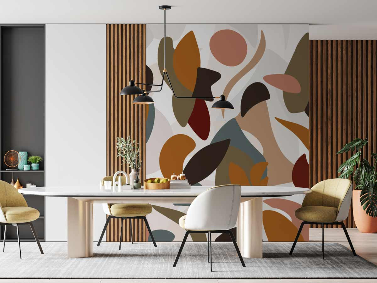 Transformez vos murs avec ce papier peint panoramique au motif abstrait composé de formes organiques et de teintes naturelles. Ce design élégant, aux nuances terreuses allant du brun au beige en passant par des tons ocres et rouille, crée une atmosphère chaleureuse et apaisante. Parfait pour un intérieur moderne et minimaliste, ce papier peint s'adapte aussi bien à un salon, une chambre ou un bureau, apportant une touche naturelle et sophistiquée à votre décoration.