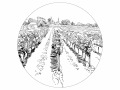 motifs : vigne, champs, église couleurs : noir et blanc